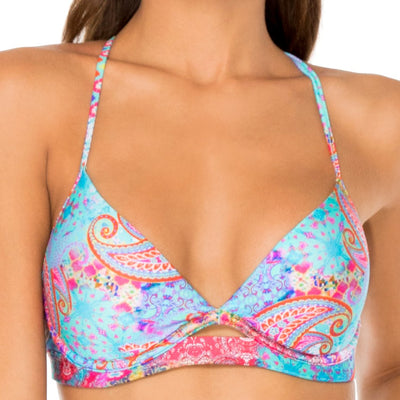 - La Mezquita Triangle Halter Top: full coverage, best for cup sizes A-DD