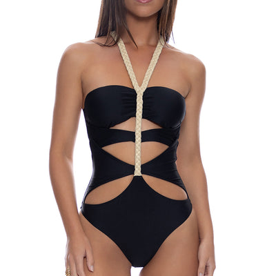 Look gorgeous and trendy in a sensational dress designed to make you the star of any tropical occasion. Crafted from luxurious shimmering gold fabric, this stunning dress sparkles in the sunlight and moonlight, adding an instant touch of glam to your beachside wardrobe. The braided multi-way neck straps are a unique accent, while the adjustable back corset with string ties and signature Luli Rings ensures a perfect, figure-flattering fit.