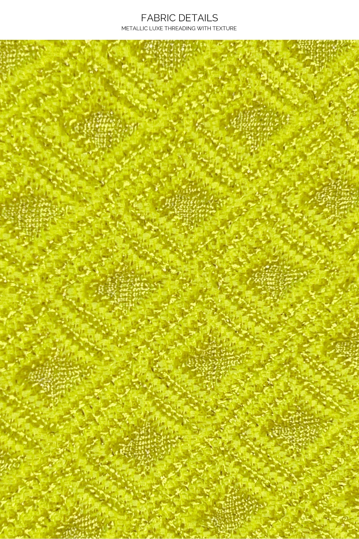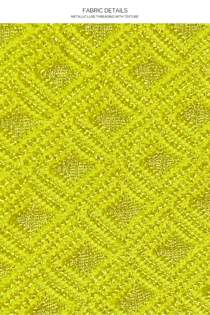 Look stunning in this glamor girl ensemble, perfect for your next tropical getaway. This BRILLA Mini Skirt set is a chic, upbeat look that will turn heads wherever you go. Featuring geometric shapes embellished with shimmery accents, this vibrant miniskirt set in a brilliant neon yellow color is a fun, fashion-forward choice for any resort adventure.