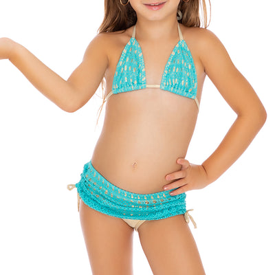 BURBUJAS DE AMOR - Triangle Top Skirt Bottom Bikini • Aqua – Luli Fama