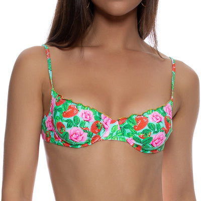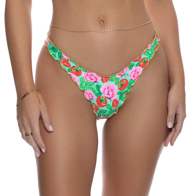 This collection is festive and vibrant just like our babes! Our Strawberry Fields collections gives you the luli signature wavy trims. The print features neon shades that radiate under the sun. The adorable resort pieces complete all your looks for the tropics.