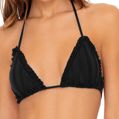 - Bandeau Top: drawstring center adds a custom feminine touch to these ruffled cups