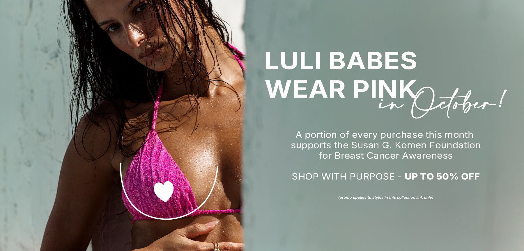To show our support for Breast Cancer Awareness, a portion of sales in the Luli Goes Pink collection will be donated to the Susan G Komen foundation for the month of October.Luli Fama loves creating swimwear that helps women of all ages, shapes and sizes embrace their curves and show off their sense of style. We also care deeply about women’s health, so creating a collection of sizzling pink bikinis for  Breast Cancer Awareness Month was a natural fit for us.Join us this October in standing up to this disease with the beauty, style and grace that all our Luli Babes personify. For breast cancer to be a thing of the past, we need to work together. Find the Breast Cancer Awareness bikini that suits your style, and stand with us for women’s health.