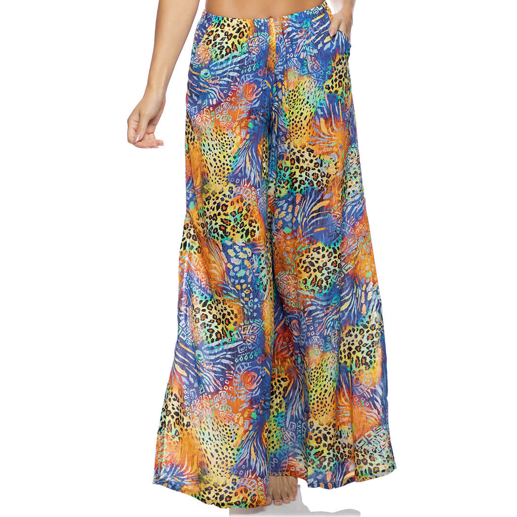 - Wide Leg Pants - Elastic Waist For Comfort - Stylish Leg Slits - Side Pockets - Prints Are Not Exact And May Vary According To Cut - 98% Viscose 2% Lurex