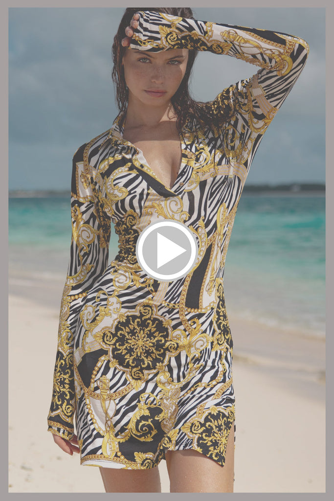 Luli Babes, this GODDESS VIBES Blouse Dress, is a glamorous look that makes a memorable fashion statement wherever you go. This mini dress showcases a unique style, featuring a bold zebra print embellished with gold floral accents that convey opulence and island-inspired flair.