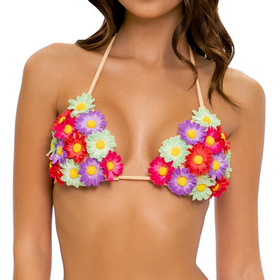 - Pretty Things Triangle Top: get a custom fit every time with adjustable string ties on this blossoming triangle top with 3D floral accents