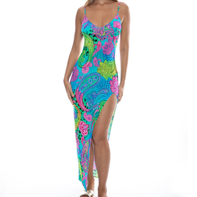 SEAGLASS FANTASY - Fitted Side Slit Maxi Dress • Multicolor – Luli Fama