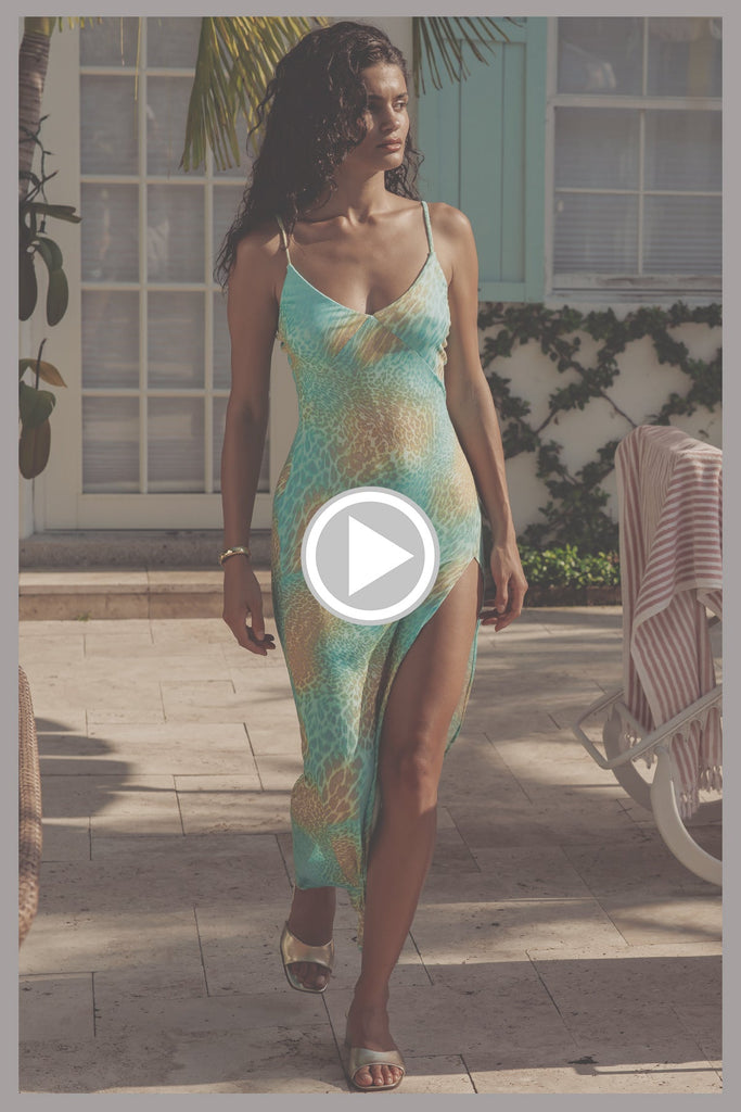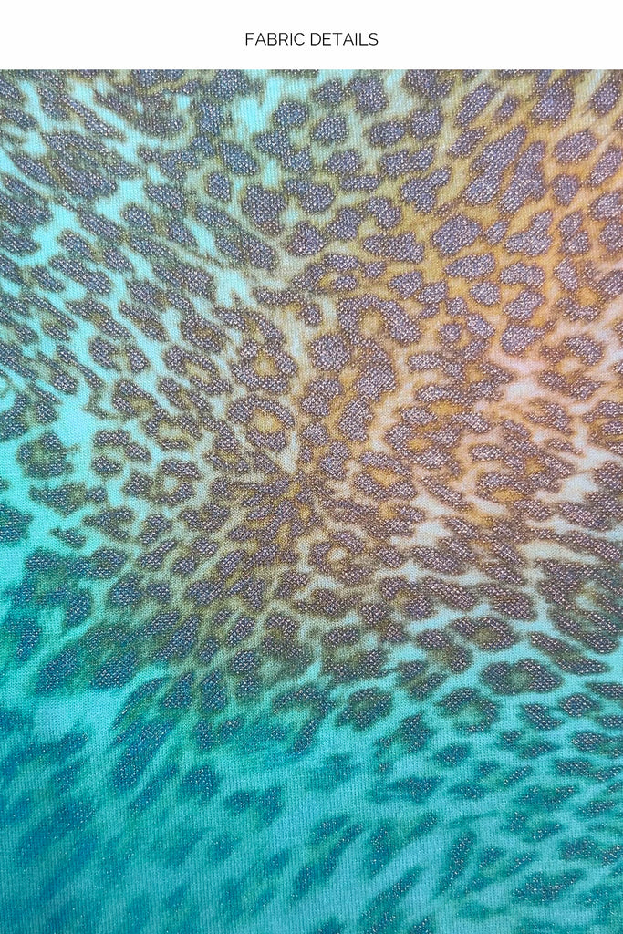 Shine fierce in the gold and aqua metallics of Savage Essence. This bold print blends exotic patterns with shimmering glam for a head-turning beach or pool look. Make every moment a statement!