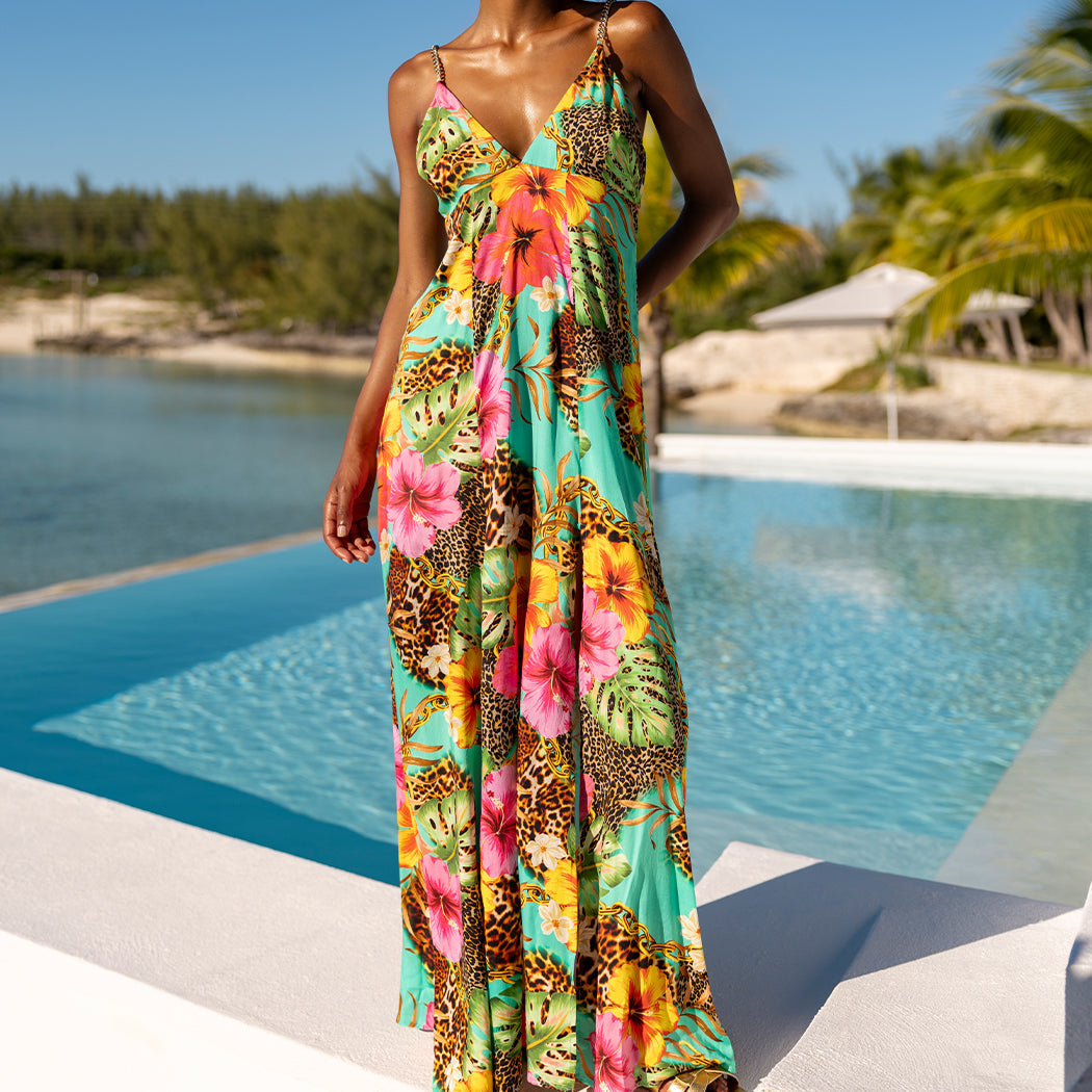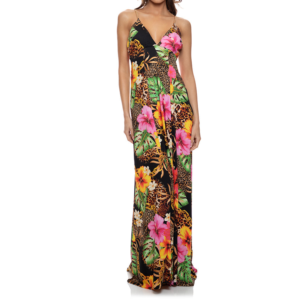 VISIONS OF PARADISE - Chain Bralette Side Slit Maxi Dress