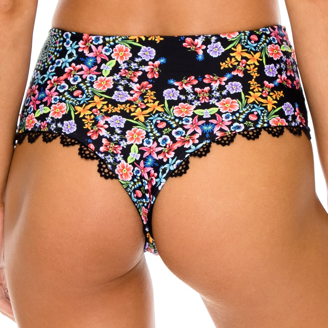 -High in the waist cheeky in the back = PERFECT! -Seamlessly cut all around -High leg design for our bold babes -Cheeky back coverage with flirty lace trim design -Print is not exact and may vary according to cut -80% Nylon 20% Spandex
