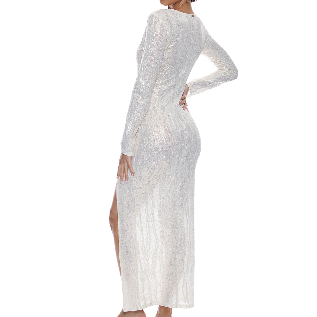 OPALESCENCE - Long Sleeve Keyhole Cut Out Maxi Dress