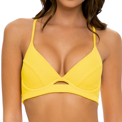 Crank up the heat with this canary yellow bikini from the Playa Vibes collection. Its bright yellow, ribbed fabric comes to life with the supportive underwire top and retro-inspired high leg bottoms. You won't be able to resist the look of bright yellow on sun-kissed skin with the Playa Vibes bikini!