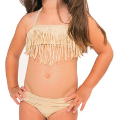 RAYITO DE SOL - Fringe Triangle Top Ruched Back Bikini • Gold Rush – Luli Fama