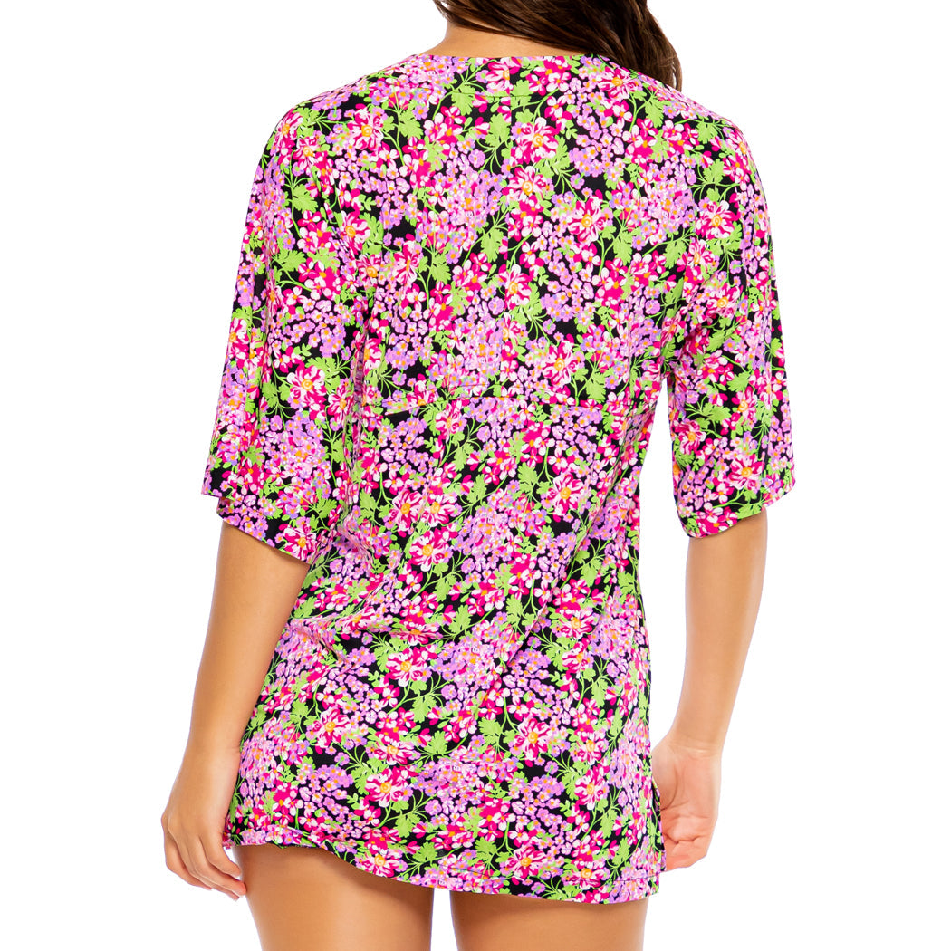 - Relaxed Style Tunic - Loose Fit Sleeves - Deep Plunging Neckline - Center Tie Adjustment Allows You To Customize The Fit - Ties Completed With Our Signature Luli Rings - Flowy Mini Skirt - 100% Nylon