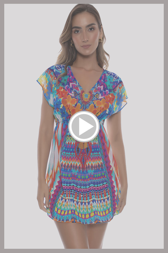 TRIBAL BEACH - Cap Sleeve Short Caftan • Multicolor – Luli Fama